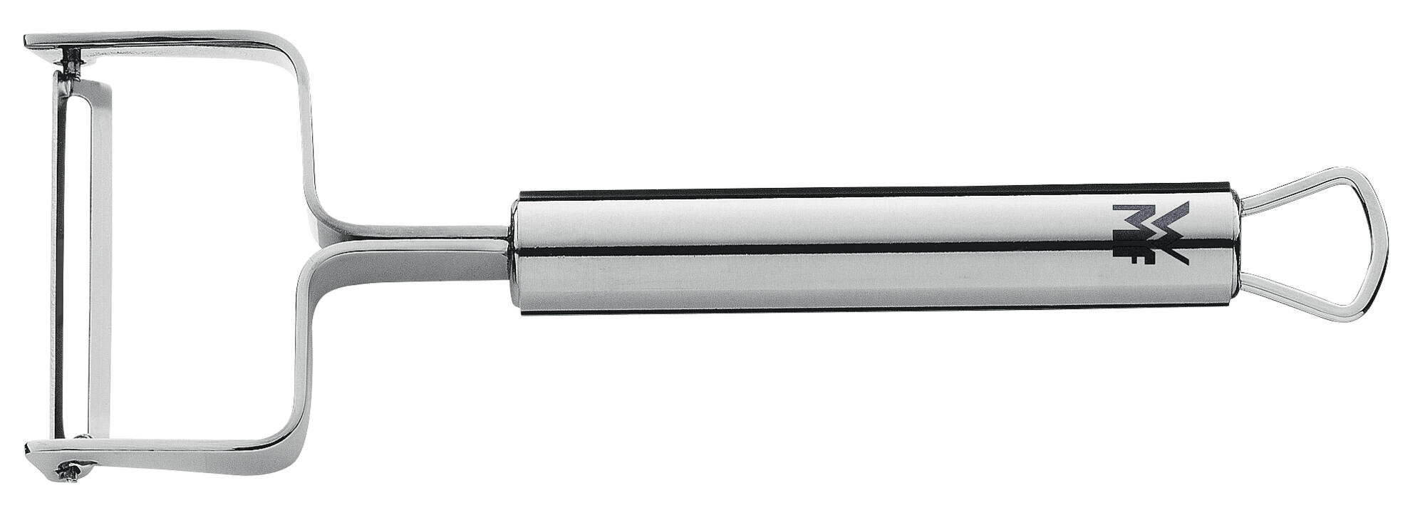 The WMF Profi Plus peeler lives up to its name. It saves a great deal of time and effort when peeling vegetables. The sharp blade glides effortlessly beneath the skin of apples, mangos, cucumbers and potatoes, and peels off thin layers so that nothing is wasted, even with precious asparagus. The handy kitchen gadget is suitable for people who are left or right-handed, it can be easily cleaned in the dishwasher and then conveniently hung on a hook using the practical loop to save space.