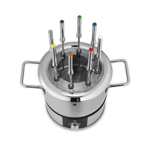 The WMF Lono Fondue Set brings friends and family around the dining table for a celebration in sharing. With a robust fondue pot crafted from premium-quality Cromargan®, as well as 8 fondue forks with convenient color markings, savory oil and stock fondues have never looked better. The clever fork holder features a dedicated slot for optimal ease of use, while an adjustable temperature setting ensures perfect results every time.