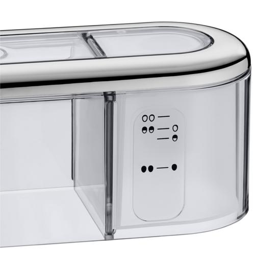 Boiling eggs to perfection has never been easier... or looked better. The pinnacle of exquisite aesthetics, compact design and high performance, the WMF KITCHENminis Two-egg boiler is crafted from WMF's exclusive patented Cromargan®, ensuring robust, long-lasting performance, with a chrome matte finish that never fails to impress. Compact in size for easy storage, it ensures perfect hard or soft boiled results every time, with ideal space for up to two small to XL eggs in a dedicated insert. Its transparent cover is made from durable, BPA-free Tritan and features an integrated measuring cup that that guarantees the perfect amount of water adapted to both egg size and desired hardness. As the finishing touch, this convenient electric egg cooker is equipped with well-designed features, including an illuminated on-off switch and an automatic acoustic signal that lets you know when your eggs are ready. Discover the entire WMF KITCHENminis series, for the perfect blend of exceptional results and sleek design.