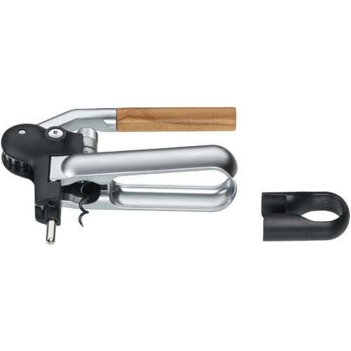 Discover the convenient way to uncork wine, with a professional corkscrew that delivers unmatched precision. Simply place over a bottle of any size, squeeze the side handles and lift the lever. Thanks to the premium pointed screw and mechanism, the cork is completely removed – without leaving any pieces in the bottle. This premium corkscrew is an elegant, ergonomic design that guarantees total safety during use and comes with a foil cutter to complete the professional bottle-opening experience. A perfect gift for wine lovers and sommeliers, it comes in a beautiful, high-quality gift box.